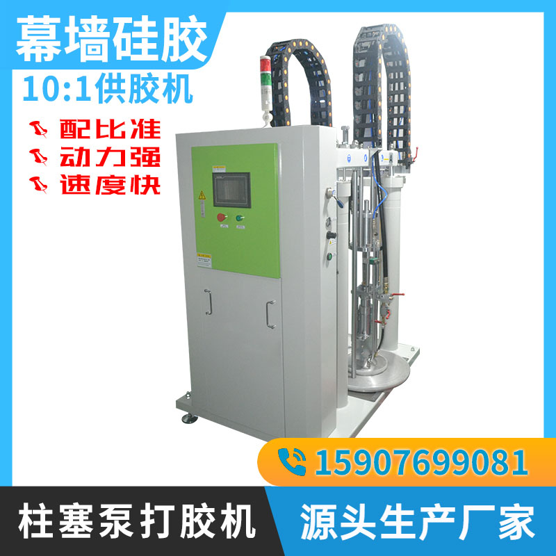幕墻打膠供料機(jī),專門針對建筑裝修行業(yè)的雙組份膠水設(shè)計(jì),AB雙液比例可以是10:1,也可以是1:1,特別適合液態(tài)硅膠、硅酮結(jié)構(gòu)膠、防水密封膠等雙組份高粘度膠水使用!