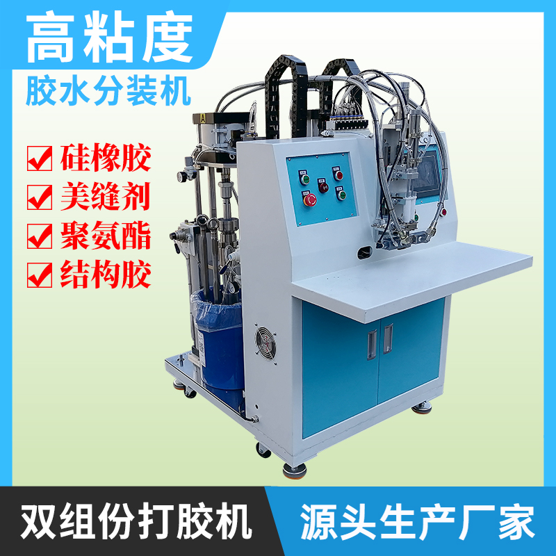 此款AB膠水分裝機,專門針對雙組份高粘度的硅橡膠、美縫劑等進行分裝到50ml的1:1連體針筒,計量精準、自動化程度高!其它5:1、10:1等比例,以及300ml、900ml等也能定制,歡迎咨詢了解。