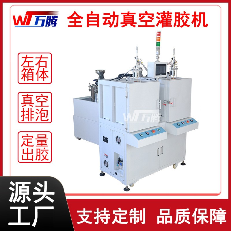 此款全自動雙頭真空灌膠機,兩個真空箱輪流工作,大大提升效率。對于灌膠要求比較高的脈沖高壓包、小型變壓器、液壓馬達等產品,這款真空灌膠機就是理想選擇,廣泛應用于汽車航空、3C電器、電子元件等行業!各種雙組份不同比例的聚氨酯、環氧樹脂、液態硅膠等水性膠水都適用!